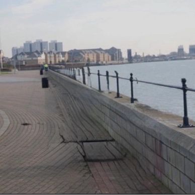 To get the mark it’s a walk of around 10-15 minutes through the small woods and then to the right along the seafront, along the way you’ll pass some amazing graffiti murals and just keep walking until you reach a long grassed area and gentle sloping bank between two working Jetties about 500m apart from each other, this is where you fish from.
